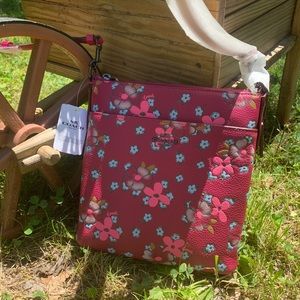 Authentic COACH Floral leather top zip Crossbody