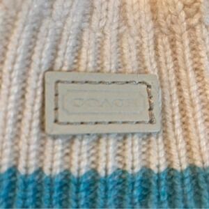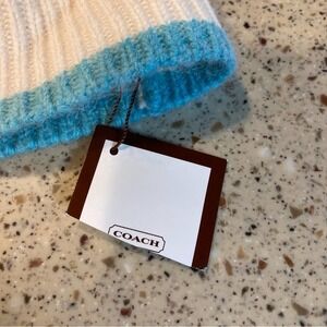 Authentic COACH IVORY AND BLUE BEANIE- WOOL, ANGORA, CASHMERE BLEND- NWT