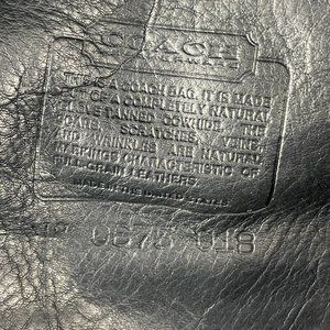 Authentic COACH Large Soho Black Leather Shopping Tote Bag Brass hardware Double flat shoulder straps, drop approx. 11.5'' Top magnetic closure Unlined interior with 1 zip small pocket Measurements: approx. 17.5'' x 15.5'' x 9'' A great shopping/traveling tote bag with plenty of room Comes with an original Coach leather fob It is still in good pre-owned condition with wear, some scratches, smudges, and age. Neither new nor in mint condition Please see the posted pictures for detail Ask any questions before purchasing. FYI: The second picture is the original advertisement for this Coach bag. The last picture is from the Intenet for modeling purchases only.