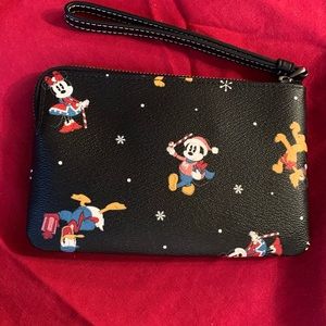 Authentic COACH Signature Coated leather Disney Xmas print zip top wristlet