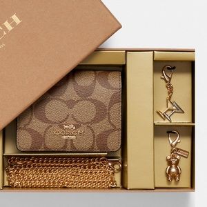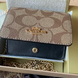 Authentic COACH Signature leather/coated canvas wallet on chain & 2 charms