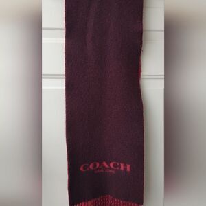 Authentic COACH 95% Wool 5% Cashmere Red & Charcoal Reversible Oblong Scarf