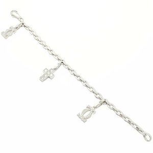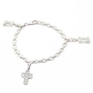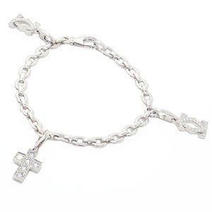 AUTHENTIC! CARTIER 18K WHITE GOLD 3 CHARM BRACELET WITH DIAMOND CROSS DOUBLE C'S