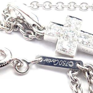 Authentic! Cartier 18k White Gold Diamond Cross Pendant Chain Necklace