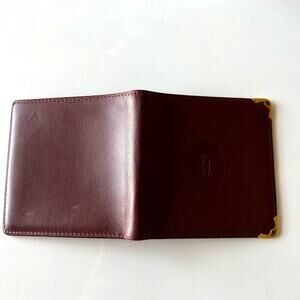 Authentic Cartier Burgundy Leather Wallet with Gold Accents