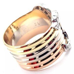 Authentic! Cartier Diamond Double C 18k Tri-Color Gold Band Ring Size 52 US 6