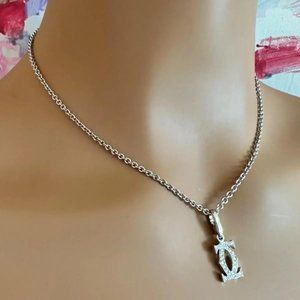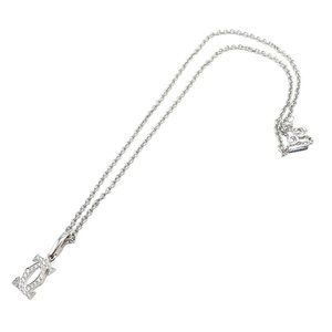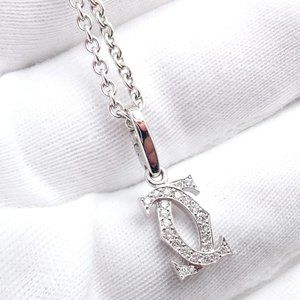 Authentic! Cartier Double C 18k White Gold Diamond Pendant Necklace