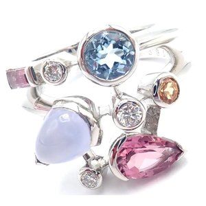 Authentic! Cartier Meli Melo Platinum Chalcedony Tourmaline Garnet Diamond Ring