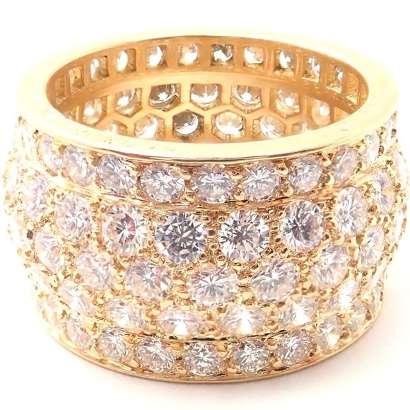 Authentic! Cartier Nigeria 18k Yellow Gold Diamond Wide Band Ring Size 53