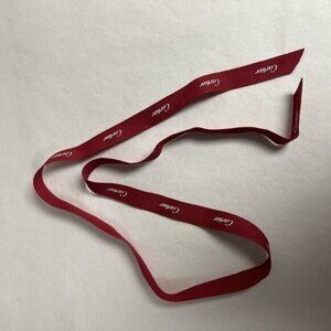 This authentic Cartier ribbon is a must-have for any crafting enthusiast. The red grosgrain ribbon measures 26.5 inches in length and features an elastic design. The single-sided printed ribbon is perfect for adding a touch of luxury to any crafting project.