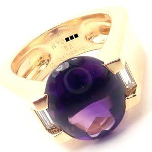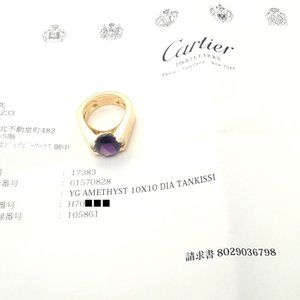 Authentic! Cartier Tankissi 18k Yellow Gold Diamond Large Amethyst Ring Paper