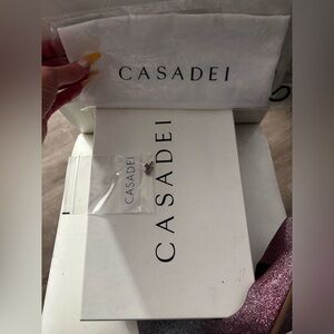 Stunning Casadei heels with sparkling pink and silver design. Ideal for a chic evening.