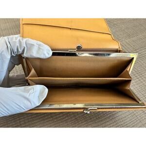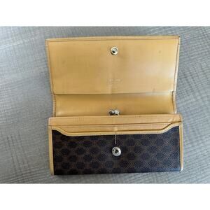 Pre-owned authentic Celine Long Wallet Purse in Macadamia Beige $1200.00 retail. The beautiful pattern and traditional gold-tone logo make this wallet very classic and elegant. The overall condition is very good, with no noticeable damage. The exterior shows scuffs, with rubbed marks also present on the inside. Black Stains on the side coming from the metal, not noticeable when the wallet has the coin pocket closed.