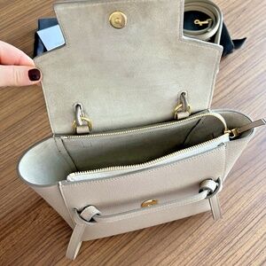 Authentic Celine Nano Belt Bag In Taupe in like new condition - worn only once. Purchased in Beverly Hills Celine Store. Neutral taupe color.