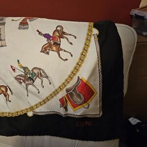 Authentic Celine Silk Scarf and Navy Blue Trim 33 x 33