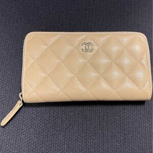 Authentic Chanel 18b beige tan medium zip wallet light gold hardware clutch