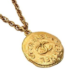 Authentic Chanel 1993 Gold Medallion CC Round Pendant Necklace with Box