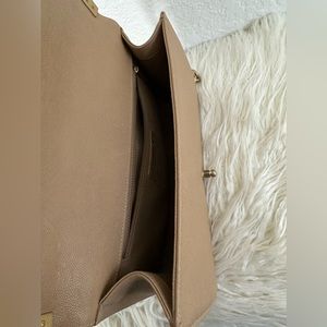Handles: double chain link strap with leather comfort pad, can be used as a long strap or looped around as a shoulder bag