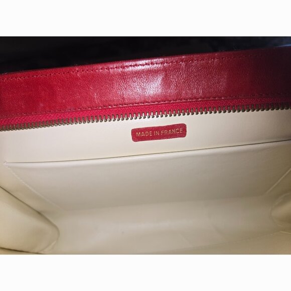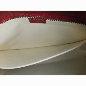 Authentic Chanel Bicolore Clutch lambskin leather with red exterior and off white/cream interior with authentic Chanel dustbag.