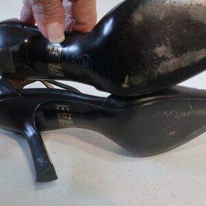 Authentic Chanel Black Pointy Leather Chain Link T-Strap Heels 39.5 US/9.5