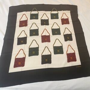 ✅💯Authentic Chanel Black and White Scarf with Bag Print.