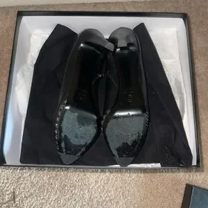 Black Chanel Booties lightly worn with box silver hardware around the front of the bootie