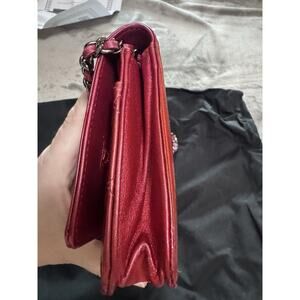 Authentic Chanel Boy Wallet On Chain WOC Metallic Red Leather W COA READ