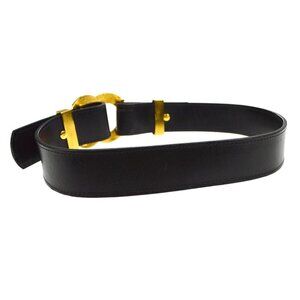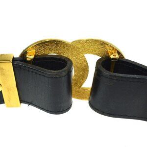 Authentic Chanel Buckle Belt Black Gold Leather 96A