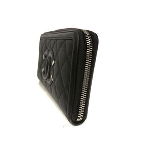 Authentic Chanel CC Filigree Quilted Matelasse Caviar Black Leather Zippy Wallet