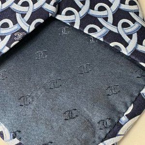 Authentic Chanel CC Logo 100% Silk Necktie, Blue