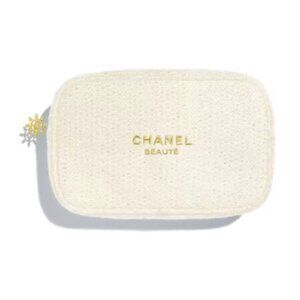 100% Authentic Chanel cosmetic make up pouch in White/ Gold. Limited Edition