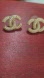 Elegant gold earrings featuring the iconic Chanel logo. Perfect for adding a touch of luxury to any outfit.