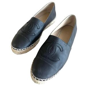 Authentic Chanel Espadrilles in Black Lambkin Raised CC Logo Size EU 37 US 7 🌸