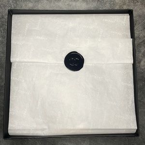 White lid, black base Chanel gift box with crinkle and tissue paper