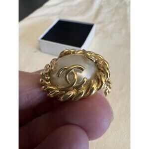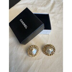 Authentic Chanel Gold With Pearl Earrings Large Clip On