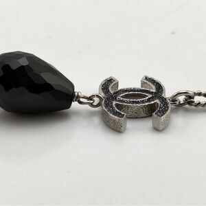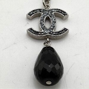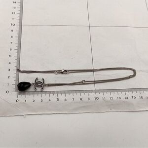 Authentic Chanel Gunmetal CC Logo Necklace Black Teardrop Pendant full inclusion