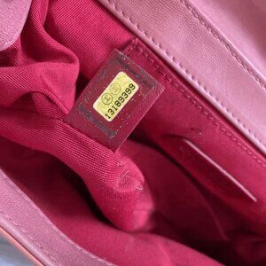 Authentic Chanel Handbag Chain Strap Leather Orange Red. Magnet closure.