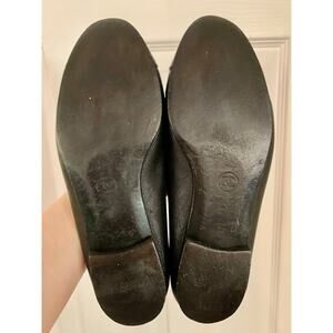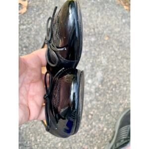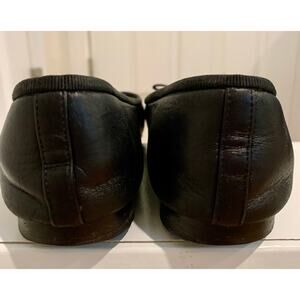 Authentic Chanel Lambskin Leather Ballet Flats 36.5 Black CC Bow Patent Cap Toe