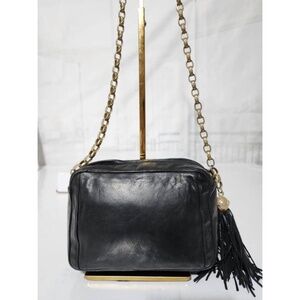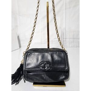 Authentic Chanel Lambskin Vintage Mini Fringe Camera Bag Black