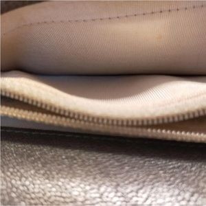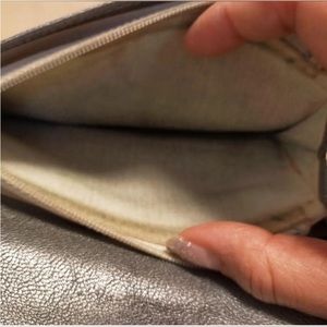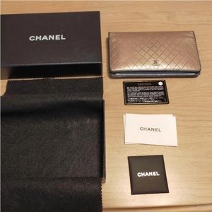 Authentic Chanel quilted champagne gold exterior and silver interior leather wallet