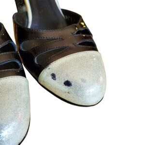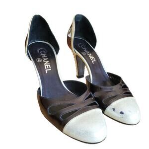 Adorable vintage Chanel pumps. Some condition issues including black mark on one toe, and the metal Chanel logo on the back of one heel is broken. Price reflects condition.