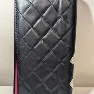 Authentic Chanel Quilted Leather Long Wallet - Black & Pink