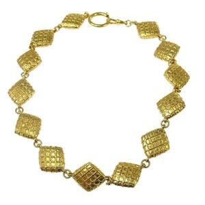 Authentic Chanel Rhombus Chain Pendant Necklace Choker Gold