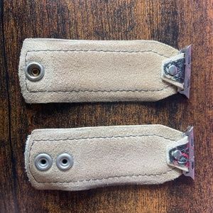 Perfect for adding a touch of elegance to any outfit. Beautiful Spark*l Apple Watch Band made from an authentic Chanel handbag. Fits a larger wrist. Worn a handful of times, but in great condition. Adapters intended for a 42/44 watch; however, I wore it with a 38/40 watch just fine. I believe that is a size 4 on the snap band chart for Spark*l.