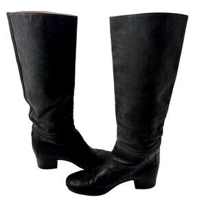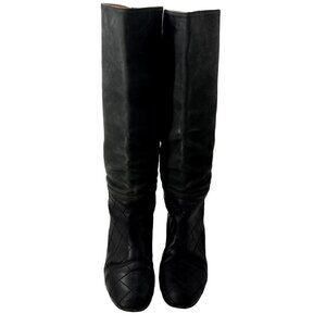 Authentic Chanel Tall Riding Boots Quilted Black CC Size 38 1/2