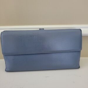 Stylish blue leather wallet with sleek design. Features iconic CHANEL logo clasp. Beautiful long buttom timeless Chanel wallet, clean in and out, with Chanel authenticity card, holo stamp on picture,, cc emblem very crispy..