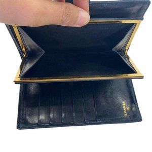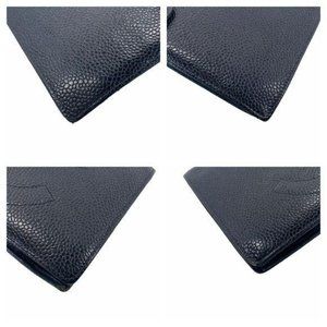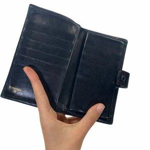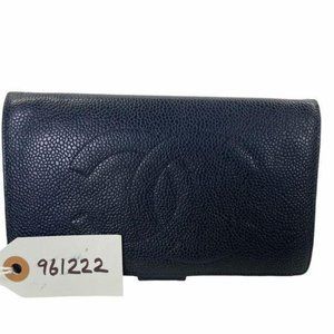 Authentic Chanel Wallet Long Black Caviar Skin Leather GG Vintage On Sale