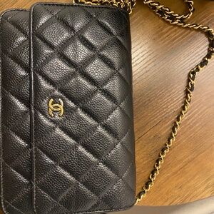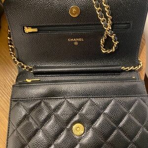 Authentic Chanel Wallet on Chain - Black Caviar Leather with Gold hardware