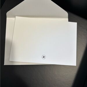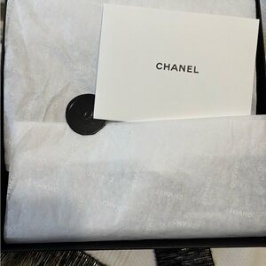 Beautiful box with blank Chanel notecard, envelope, tissue paper and ribbon with gold logo