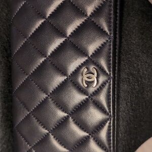 Authentic Chanel long flap leather wallet